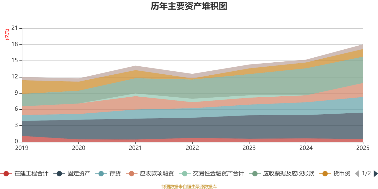 资产重大变化方面,截至2025年末,公司应收票据及应收账款较上年末减少2.94%,占公司总资产比重下降5.97个百分点;应收款项融资较上年末增加102.2%,占公司总资产比重上升5.96个百分点;长期股权投资占公司总资产的2.18%,上年末为0;固定资产较上年末增加13.07%,占公司总资产比重下降1.31个百分点。