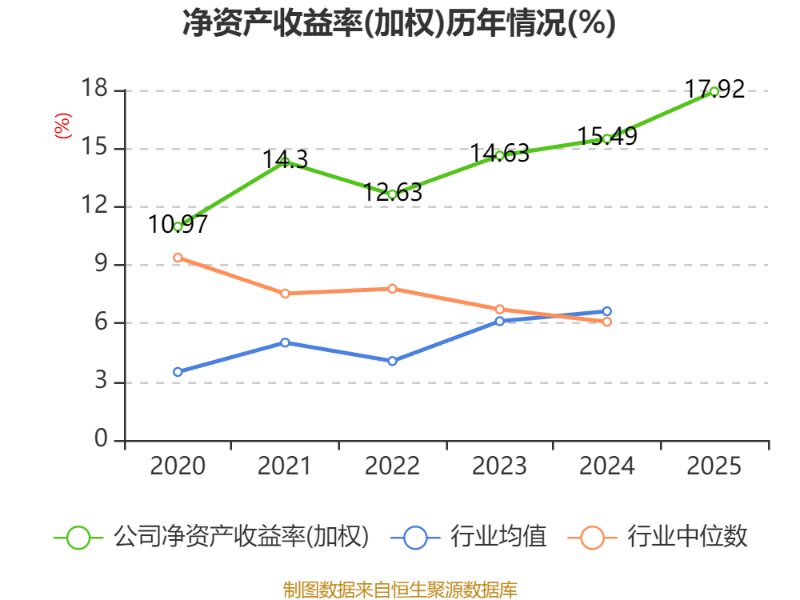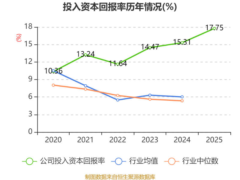 数据显示,2025年公司加权平均净资产收益率为17.92%,较上年同期上升2.43个百分点。公司2025年投入资本回报率为17.75%,较上年同期上升2.44个百分点。