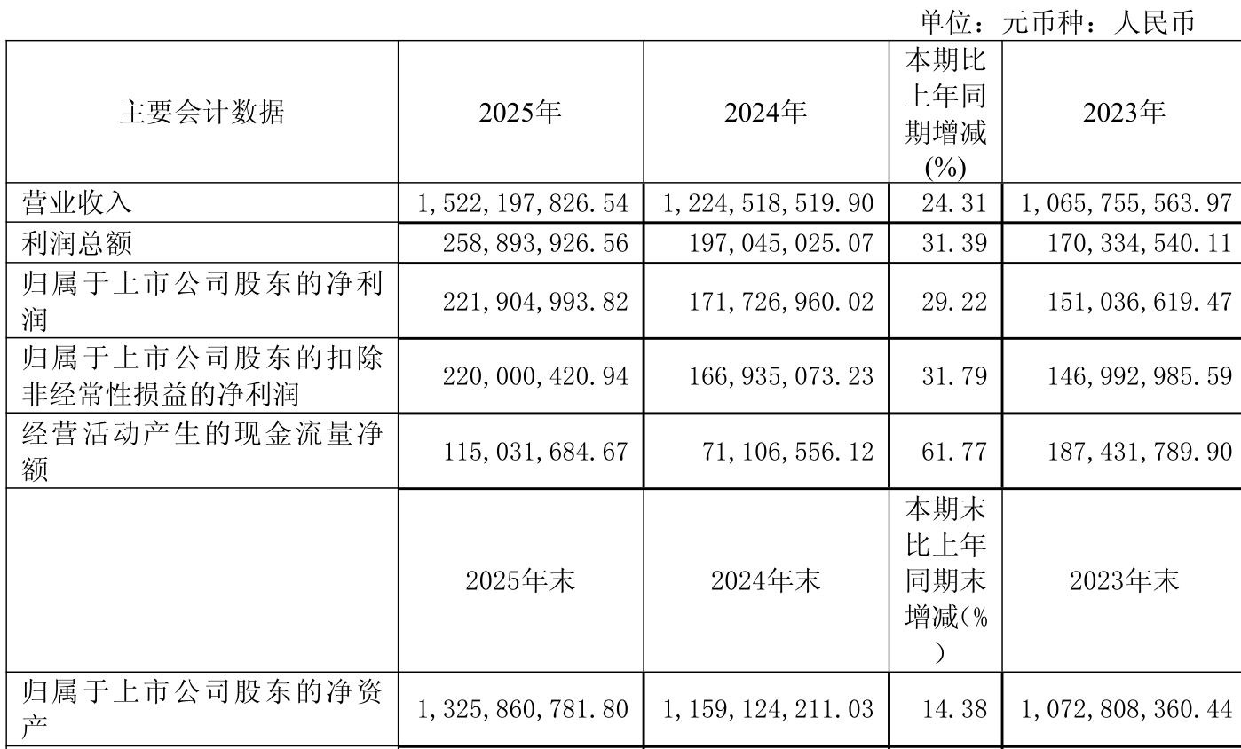 中证智能财讯浙江仙通(603239)4月8日披露2025年年度报告。2025年,公司实现营业总收入15.22亿元,同比增长24.31%;归母净利润2.22亿元,同比增长29.22%;扣非净利润2.2亿元,同比增长31.79%;经营活动产生的现金流量净额为1.15亿元,同比增长61.77%;报告期内,浙江仙通基本每股收益为0.82元,加权平均净资产收益率为17.92%。公司2025年度分配预案为:拟向全体股东每10股派现3元(含税)。