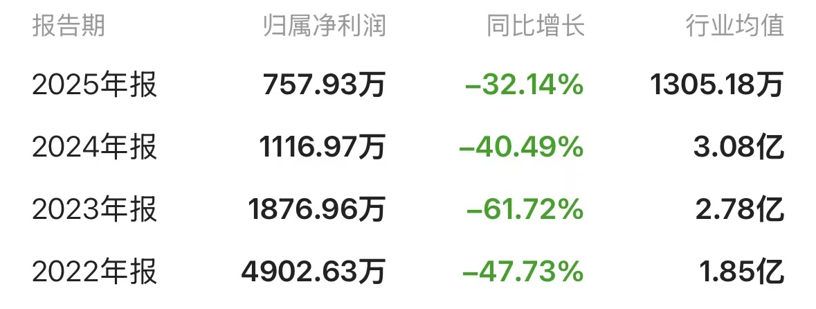 事实上,雅艺科技净利润已经连续四年下降。2022年至2025年,公司净利润同比下降47.73%、61.72%、40.49%、32.14%。