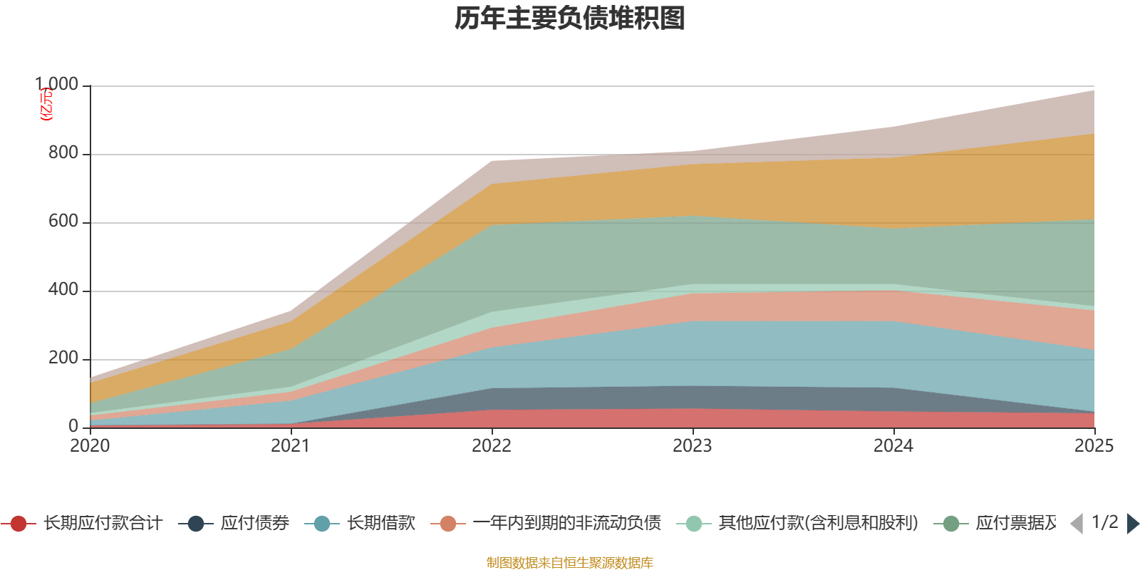 负债重大变化方面,截至2025年末,公司应付债券较上年末减少92.78%,占公司总资产比重下降4.77个百分点;应付票据及应付账款较上年末增加56.33%,占公司总资产比重上升4.04个百分点;长期借款较上年末减少7.42%,占公司总资产比重下降2.95个百分点;其他流动负债较上年末增加76.21%,占公司总资产比重上升0.87个百分点。