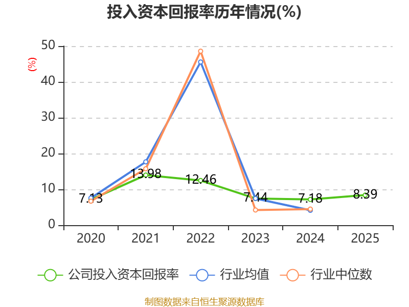 数据显示,2025年公司加权平均净资产收益率为13.7%,较上年同期上升2.01个百分点。公司2025年投入资本回报率为8.39%,较上年同期上升1.21个百分点。