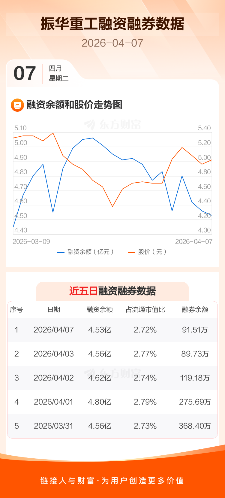 交易所最新数据显示,振华重工于2026年4月7日获融资买入1094.57万元,融资偿还1337.35万元,当日融资净偿还242.78万元。目前,该股融资余额4.53亿,占流通市值比例为2.72%。