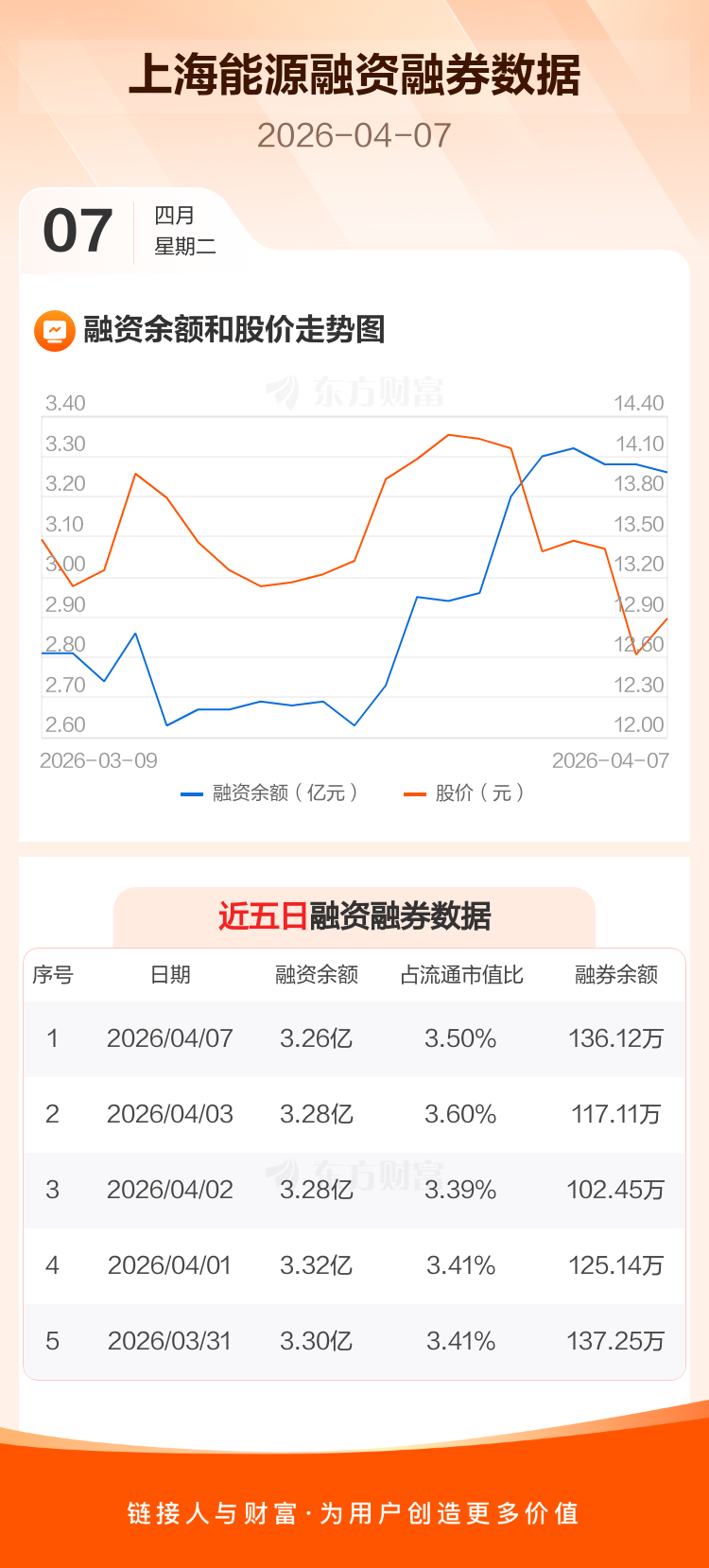 交易所最新数据显示,上海能源于2026年4月7日获融资买入755.77万元,融资偿还933.27万元,当日融资净偿还177.5万元。目前,该股融资余额3.26亿,占流通市值比例为3.50%。