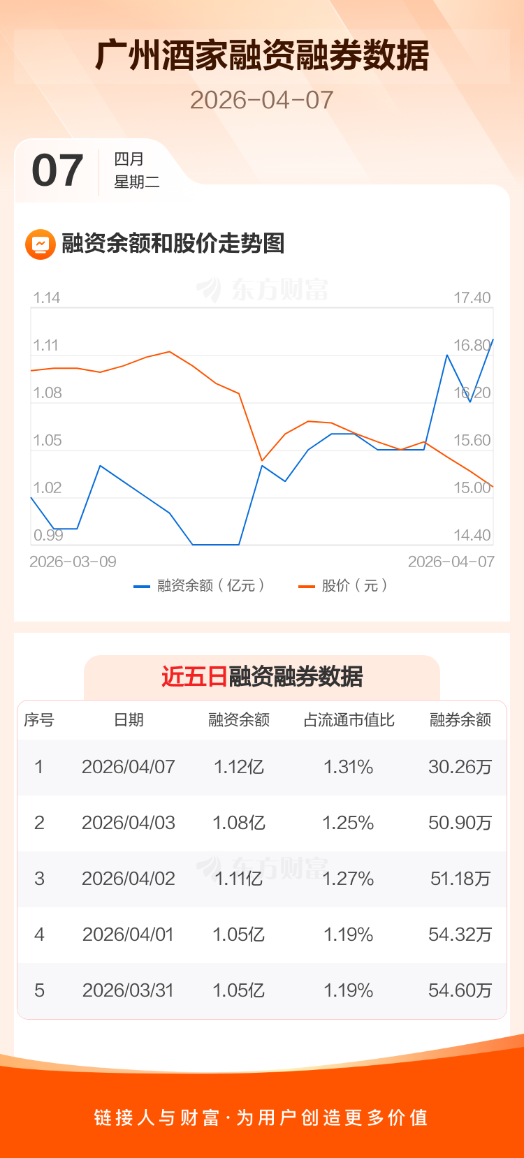 交易所最新数据显示,广州酒家于2026年4月7日获融资买入512.91万元,融资偿还154.11万元,当日融资净买入358.8万元。目前,该股融资余额1.12亿,占流通市值比例为1.31%。