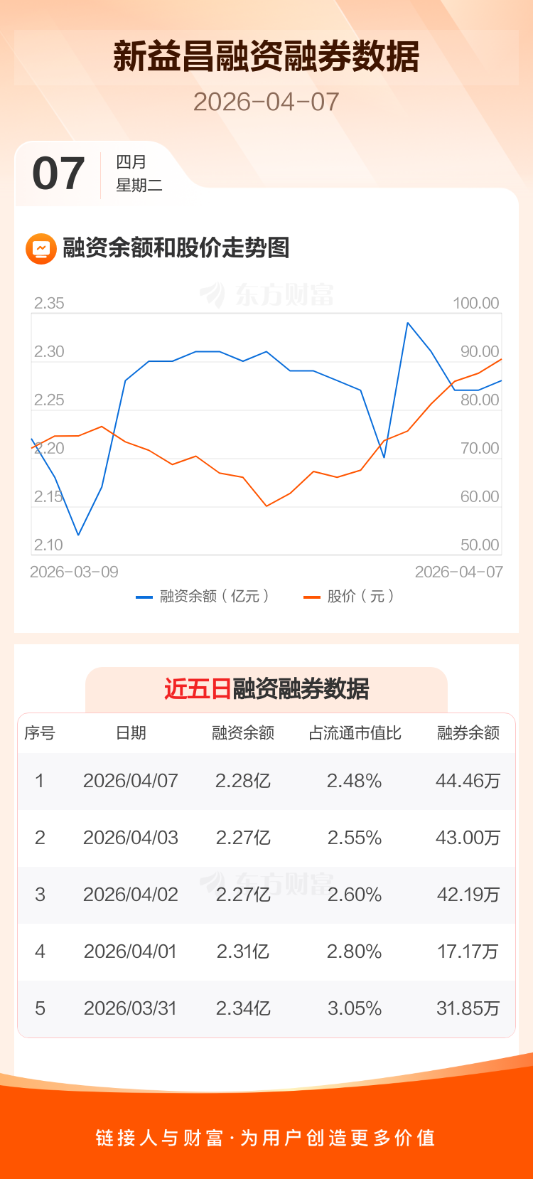 交易所最新数据显示,新益昌于2026年4月7日获融资买入2847.19万元,融资偿还2739.00万元,当日融资净买入108.18万元。目前,该股融资余额2.28亿,占流通市值比例为2.48%。