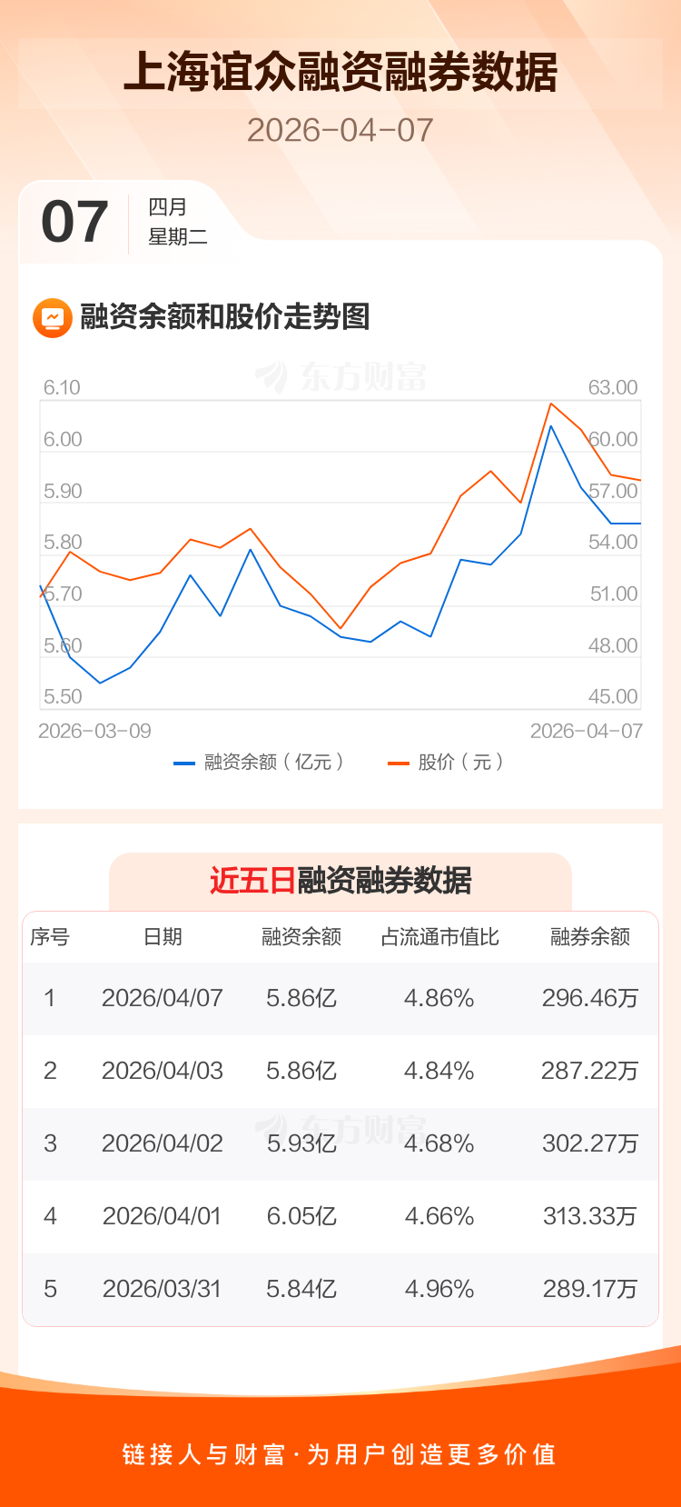 交易所最新数据显示,上海谊众于2026年4月7日获融资买入1843.42万元,融资偿还1844.03万元,当日融资净偿还6162元。目前,该股融资余额5.86亿,占流通市值比例为4.86%。