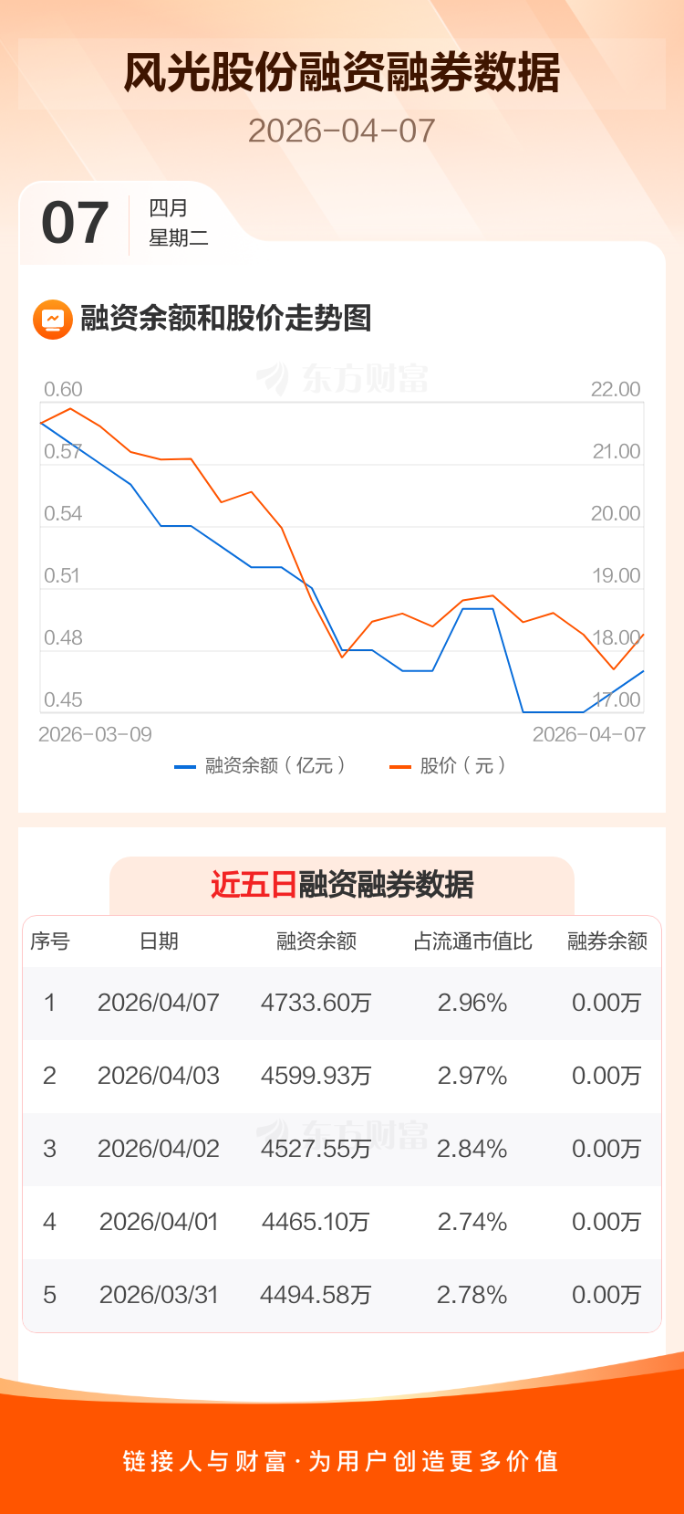 交易所最新数据显示,风光股份于2026年4月7日获融资买入333.28万元,融资偿还199.61万元,当日融资净买入133.67万元。目前,该股融资余额4733.60万,占流通市值比例为2.96%。