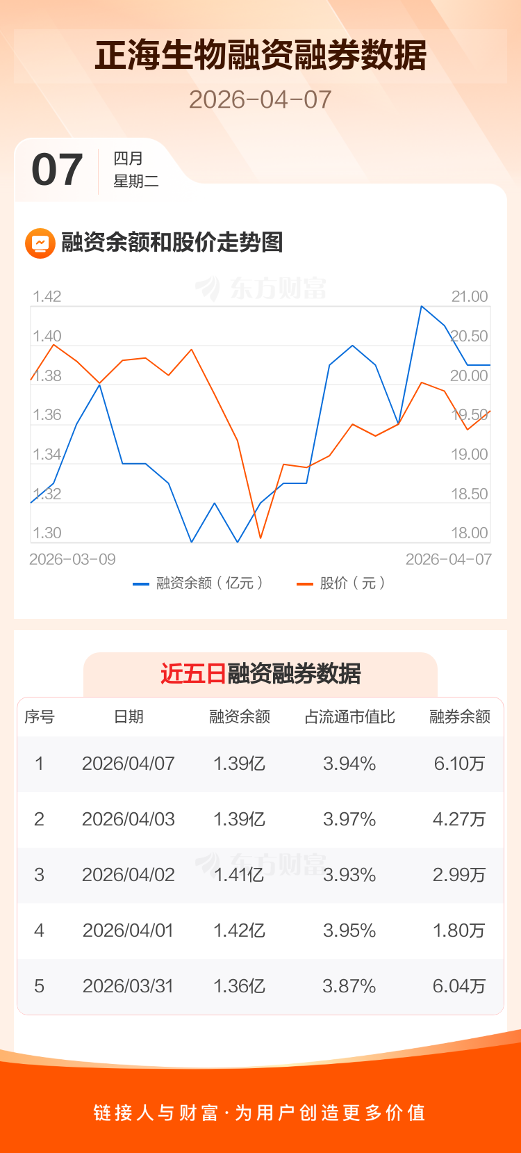 交易所最新数据显示,正海生物于2026年4月7日获融资买入485.47万元,融资偿还422.64万元,当日融资净买入62.83万元。目前,该股融资余额1.39亿,占流通市值比例为3.94%。