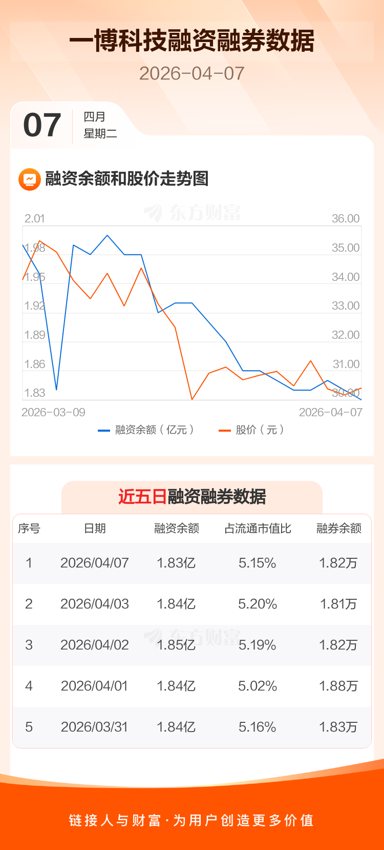 交易所最新数据显示,一博科技于2026年4月7日获融资买入257.45万元,融资偿还282.25万元,当日融资净偿还24.8万元。目前,该股融资余额1.83亿,占流通市值比例为5.15%。