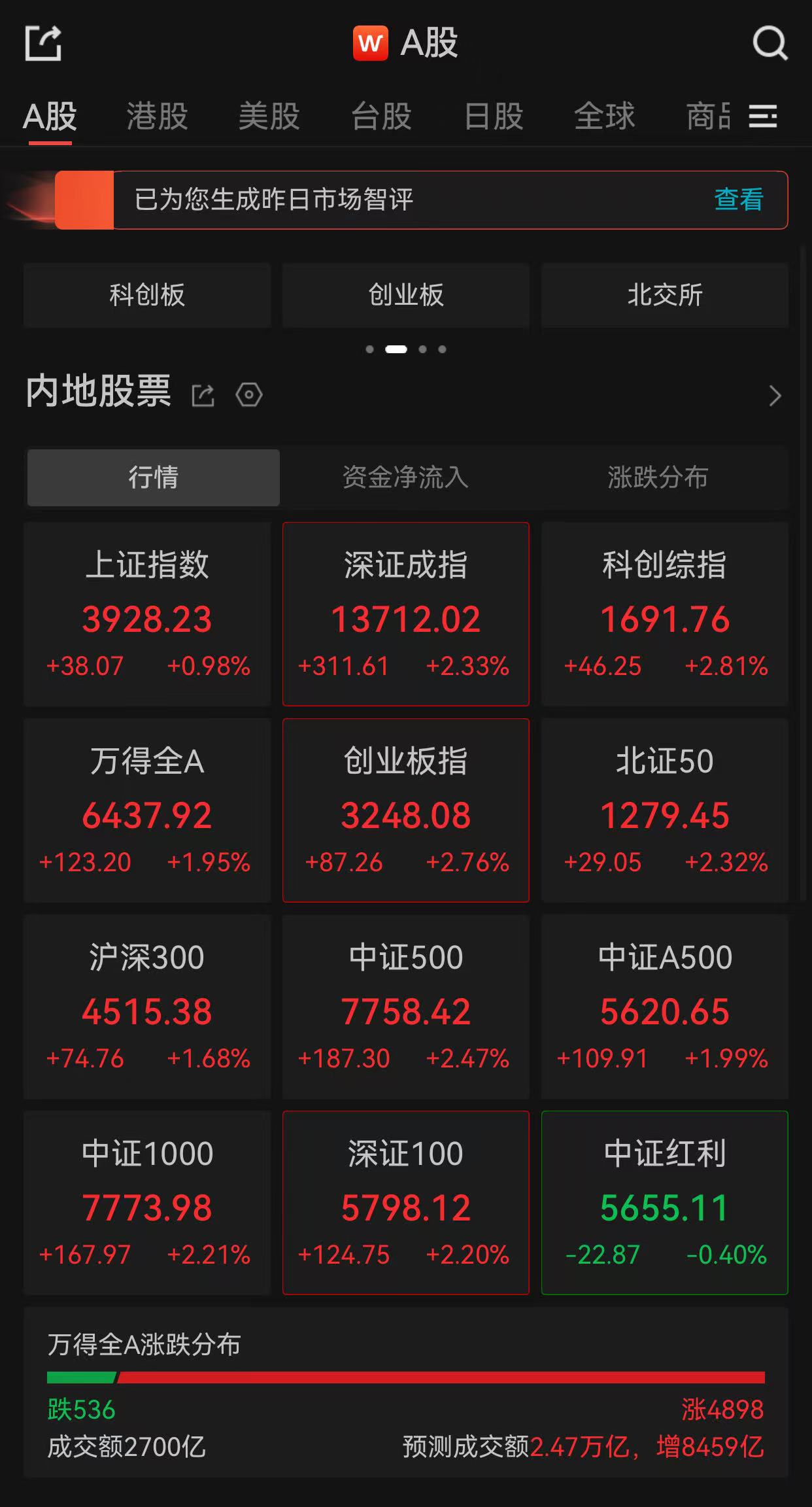 4月8日,A股和港股市场均大幅高开。Wind数据显示,截至9:33,上证指数、深证成指、创业板指分别上涨0.98%、2.33%、2.76%,整个A股市场近4900只股票上涨。