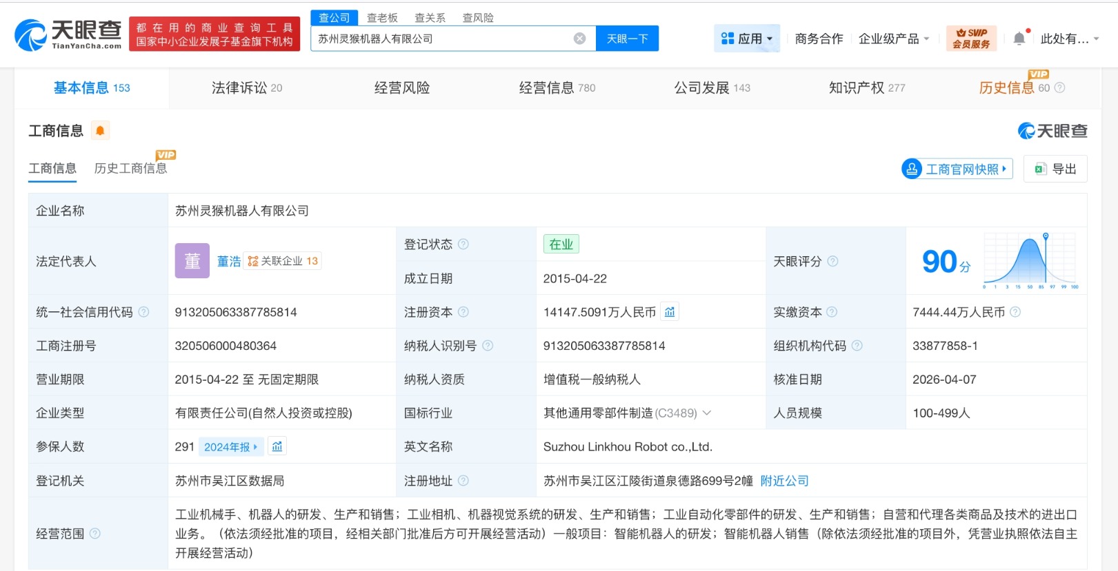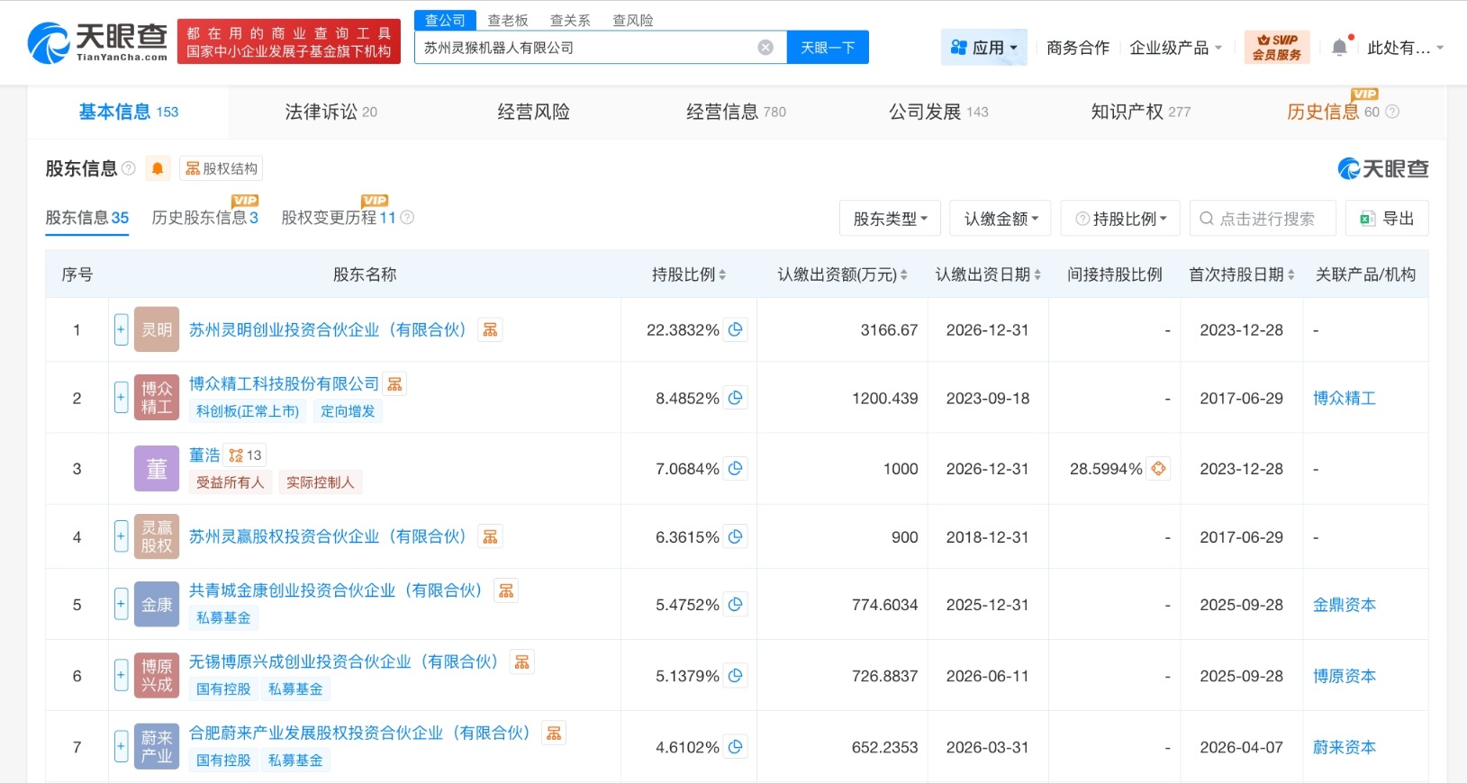 南方财经4月8日电,天眼查App显示,近日,苏州灵猴机器人有限公司发生工商变更,新增蔚来资本旗下合肥蔚来产业发展股权投资合伙企业(有限合伙)、上海临港国泰君安科技前沿产业私募基金合伙企业(有限合伙)、厦门雅恒创业投资基金合伙企业(有限合伙)等为股东,同时,注册资本由1.26亿人民币增至约1.41亿人民币。苏州灵猴机器人有限公司成立于2015年4月,法定代表人为董浩,经营范围包括工业机械手、机器人的研发、生产和销售,工业相机、机器视觉系统的研发、生产和销售,智能机器人的研发等,由董浩、博众精工(688097)及上述新增股东等共同持股。公开信息显示,苏州灵猴机器人有限公司是一家集研发、生产、销售及服务于一体的专注智能制造和具身智能领域的核心零部件供应商。