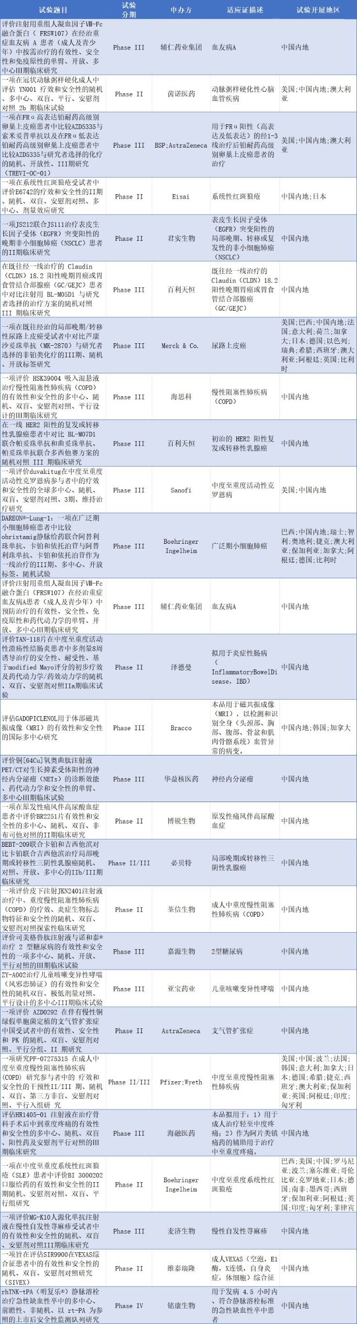 一周临床试验动向