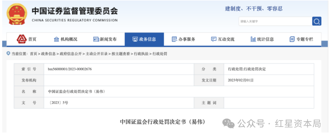 2023年2月1日,证监会公布的一份处罚书显示,涉事人是在微博拥有近40万粉丝的网络大V、上市公司三夫户外原董事易伟。