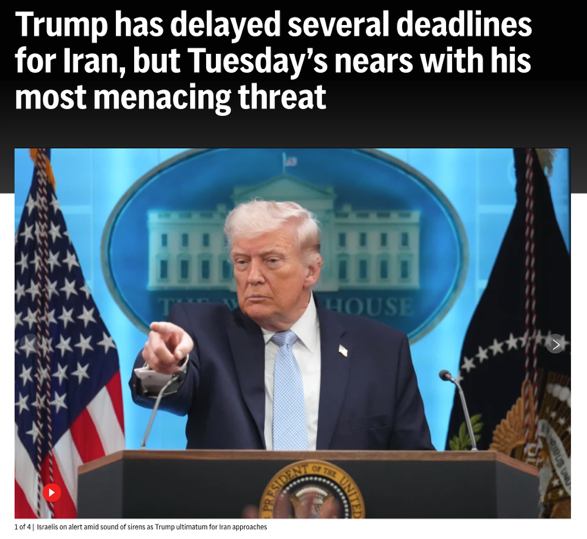 美联社报道,特朗普已多次推迟对伊朗的“最后期限”,此次“最后通牒”是威胁最严厉的一次。