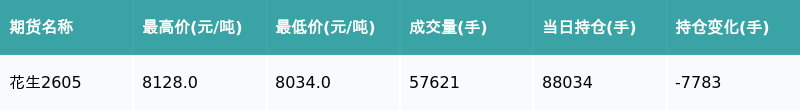 南财智讯4月8日电,盘后期货数据显示,郑州商品交易所的花生主力合约收涨0.4%,收盘报8110.0元/吨,日内资金流出4203.78万元。其他相关指标见下表: