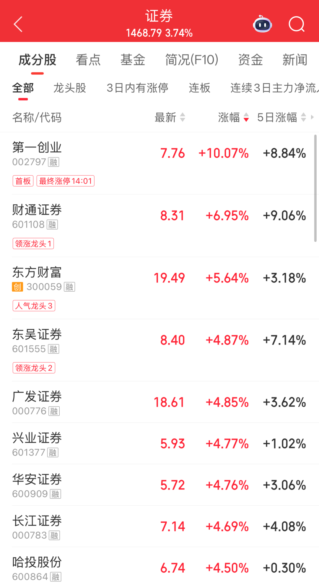 今日午后,证券、保险板块走强,第一创业涨停,财通证券、东方财富等涨幅居前;中国太保、新华保险等保险股普涨。