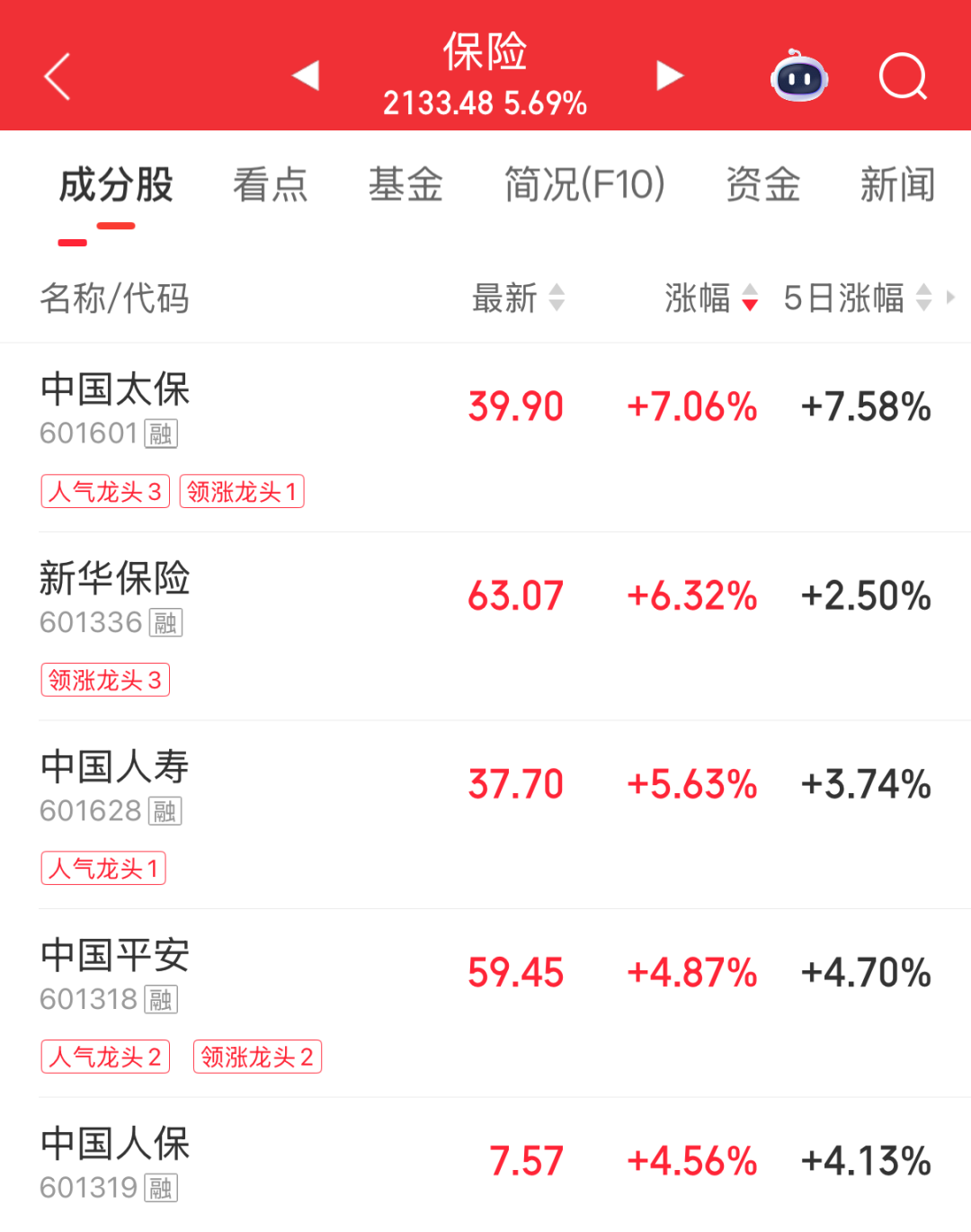 对于保险板块投资机遇,中信证券研报认为,保险板块基本面周期向上2025年已经确立,2026年一季度以来趋势强化,包括负债端继续降低负债成本、资产端有更多选择、严监管反内卷促进份额集中等。同时,期待“十五五”规划相关政策落地,推动医保商保协同发展,实现患者、医院、医生、创新药、保险公司共赢发展,可积极把握重大机遇期。