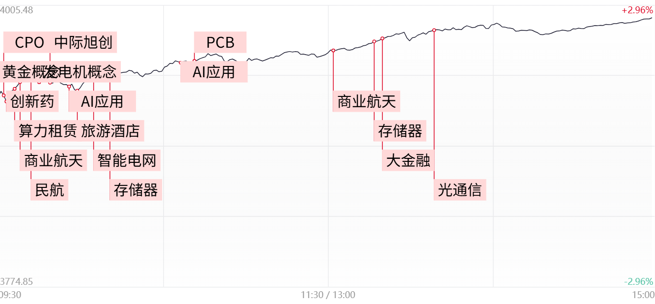 AI产业链全线爆发,算力硬件方向再度领涨,铭普光磁、东山精密、世运电路、剑桥科技、沪电股份、汇绿生态、永鼎股份等涨停。