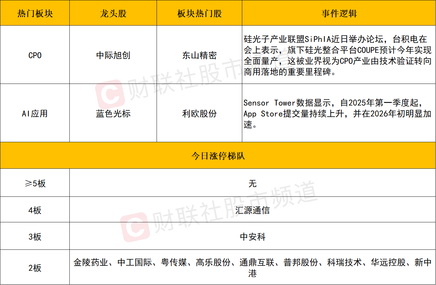 AI应用端同样展开集体反弹,蓝色光标、利欧股份、电广传媒、浙文互联、引力传媒、天地在线等涨停,易点天下、天龙集团、福石控股涨超10%。