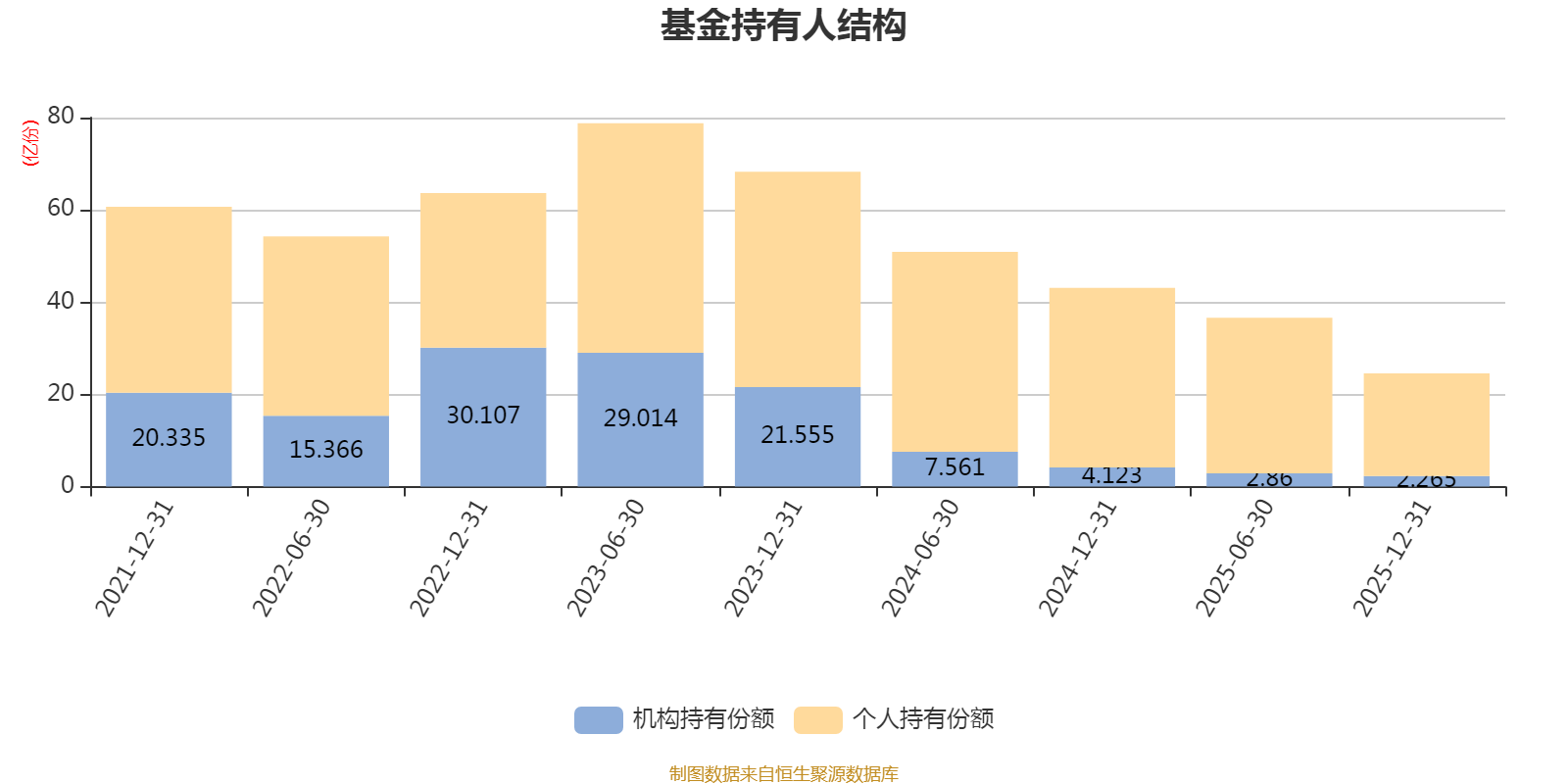 截至2025年12月31日,基金持有人共计4.03万户,合计持有24.53亿份。其中管理人员工持有1.85亿份,占比7.55%,机构持有份额占比9.23%,个人投资者占比90.77%。