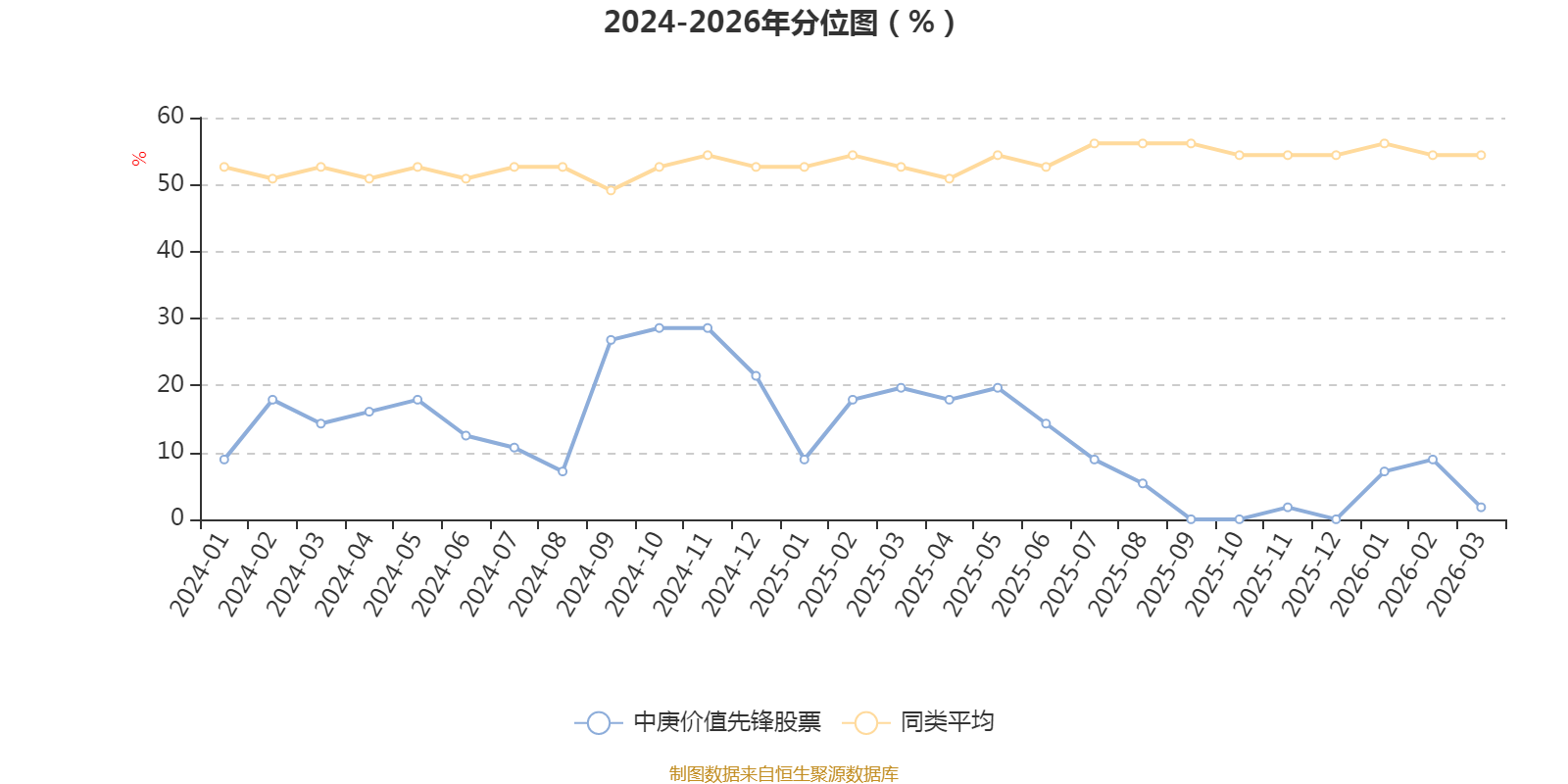 通过所选区间该基金净值增长率分位图,可以观察该基金与同类基金业绩比较情况。图为坐标原点到区间内某时点的净值增长率在同类基金中的分位数。