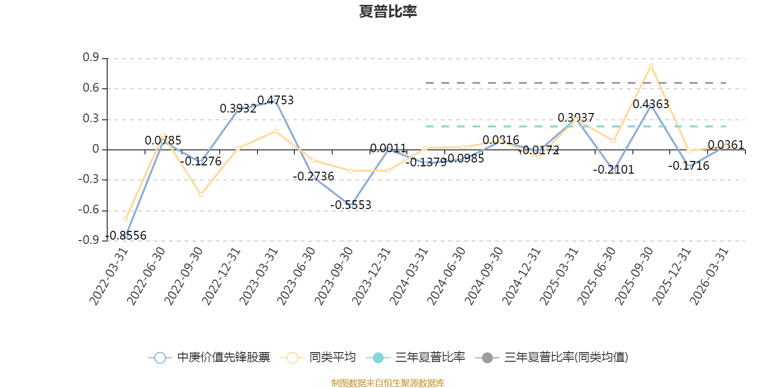 截至3月31日,基金近三年夏普比率为0.2273,位于同类可比基金53/57。