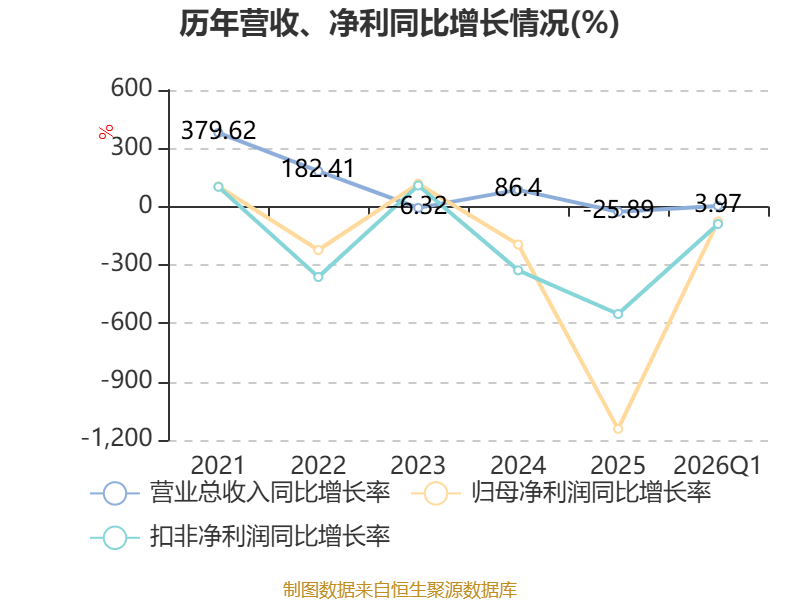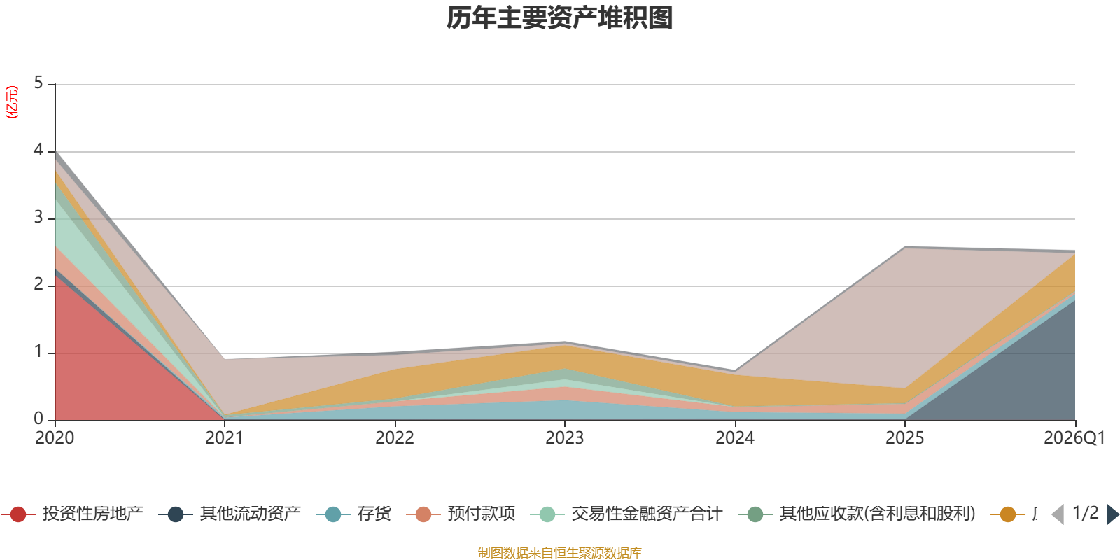 资产重大变化方面,截至2026年一季度末,公司货币资金较上年末减少99.32%,占公司总资产比重下降79.85个百分点;其他流动资产较上年末增加16277.98%,占公司总资产比重上升70.01个百分点;应收票据及应收账款较上年末增加148.25%,占公司总资产比重上升13.2个百分点;预付款项较上年末减少78.64%,占公司总资产比重下降4.41个百分点。