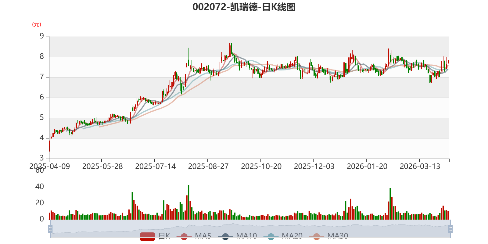 中证智能财讯凯瑞德(002072)4月9日披露2026年第一季度报告。公司实现营业总收入1.39亿元,同比增长3.97%;归母净利润亏损449.48万元,上年同期亏损255.34万元;扣非净利润亏损483.06万元,上年同期亏损255.52万元;经营活动产生的现金流量净额为-3002.45万元,上年同期为-141.14万元;报告期内,凯瑞德基本每股收益为-0.0122元,加权平均净资产收益率为-1.93%。