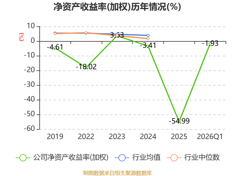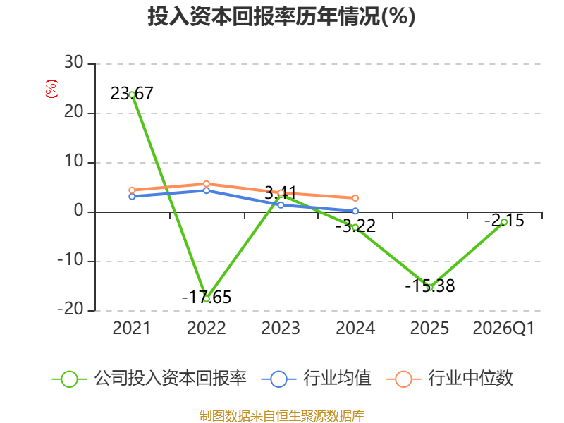 盈利能力方面, 2026年一季度公司加权平均净资产收益率为-1.93%,同比上升3.16个百分点。公司2026年第一季度投入资本回报率为-2.15%,较上年同期上升3.09个百分点。