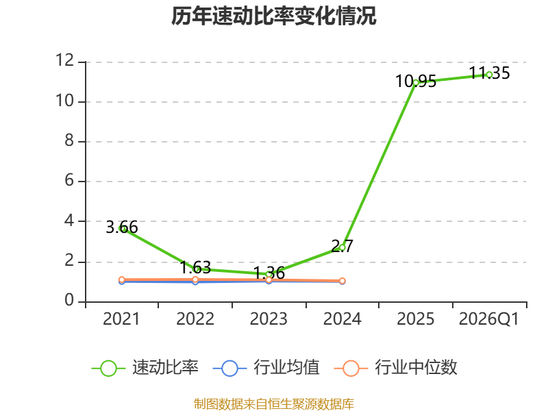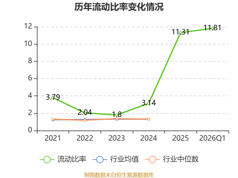 2026年第一季度,公司流动比率为11.81,速动比率为11.35。