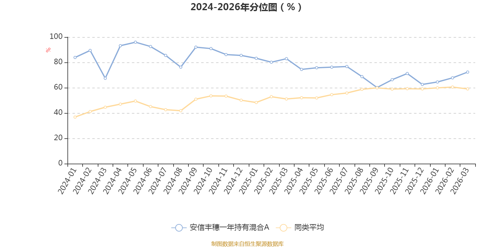 通过所选区间该基金净值增长率分位图,可以观察该基金与同类基金业绩比较情况。图为坐标原点到区间内某时点的净值增长率在同类基金中的分位数。