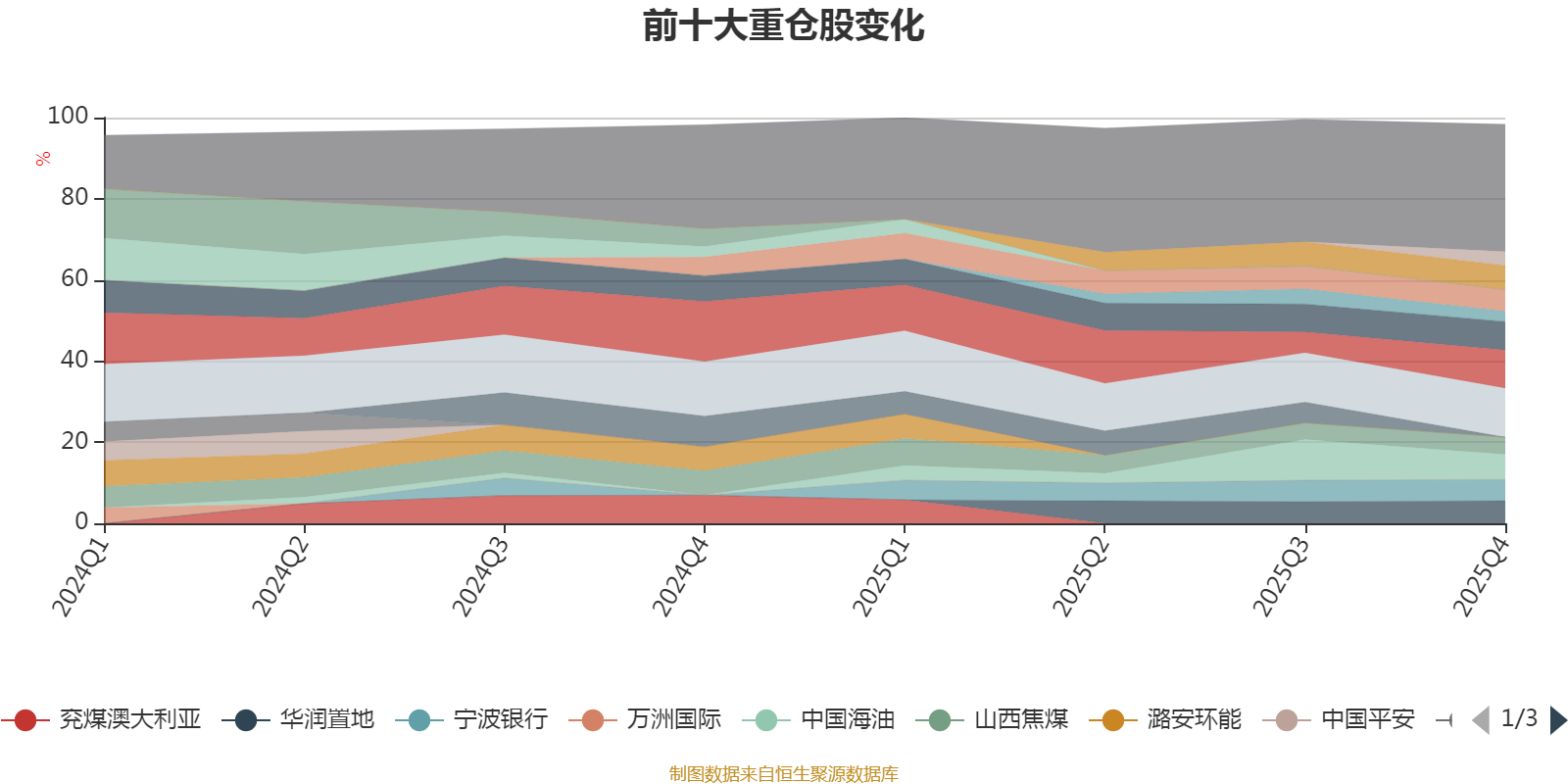 该基金持股集中度较高,近2年前十大重仓股集中度长期超过60%。截至2025年末,基金重仓股分别是中国海外发展、中国海洋石油、美的集团、中国海油、海尔智家、华润置地、晋控煤业、宁波银行、山西焦煤、淮北矿业、中煤能源。