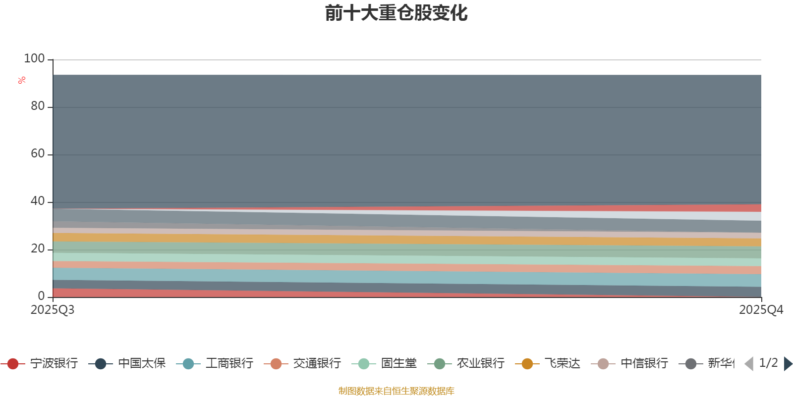 截至2025年末,基金十大重仓股分别是工商银行、农业银行、建设银行、中国太保、江苏银行、交通银行、飞荣达、固生堂、云南白药、中信银行。