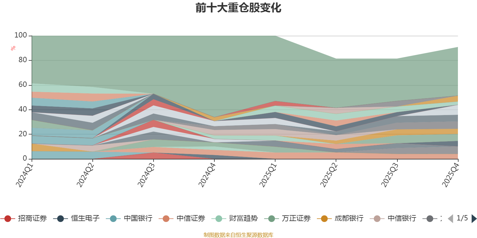 截至2025年末,基金十大重仓股分别是华泰证券、九方智投控股、同花顺、指南针、广发证券、国泰海通、国信证券、东方证券、中信证券、中金公司。