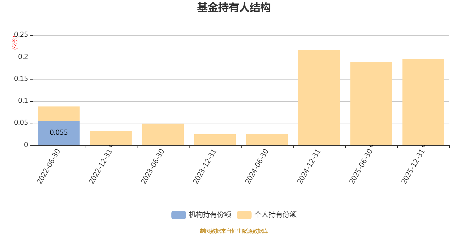 截至2025年12月31日,基金持有人共计1233户,合计持有1960.29万份。其中管理人员工持有2533.2份,占比0.01%,机构持有份额占比0.00%,个人投资者占比100.00%。