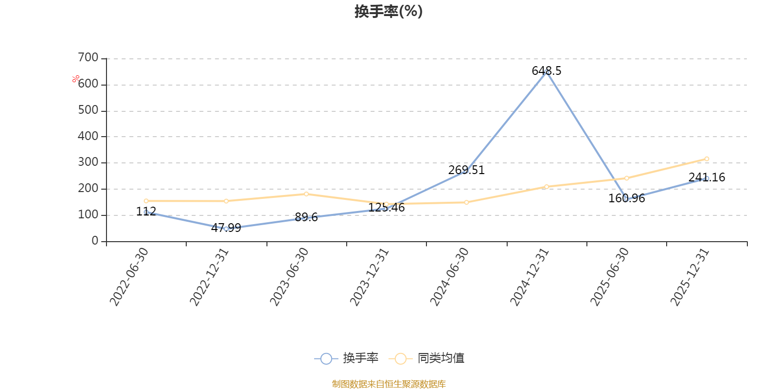 截至2025年12月31日,基金最近一年换手率约403.09%,持续1年低于同类均值。