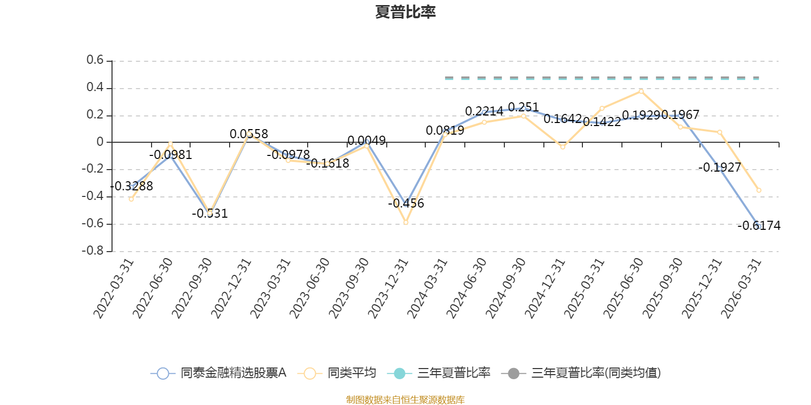 截至3月31日,基金近三年夏普比率为0.4664,位于同类可比基金4/5。