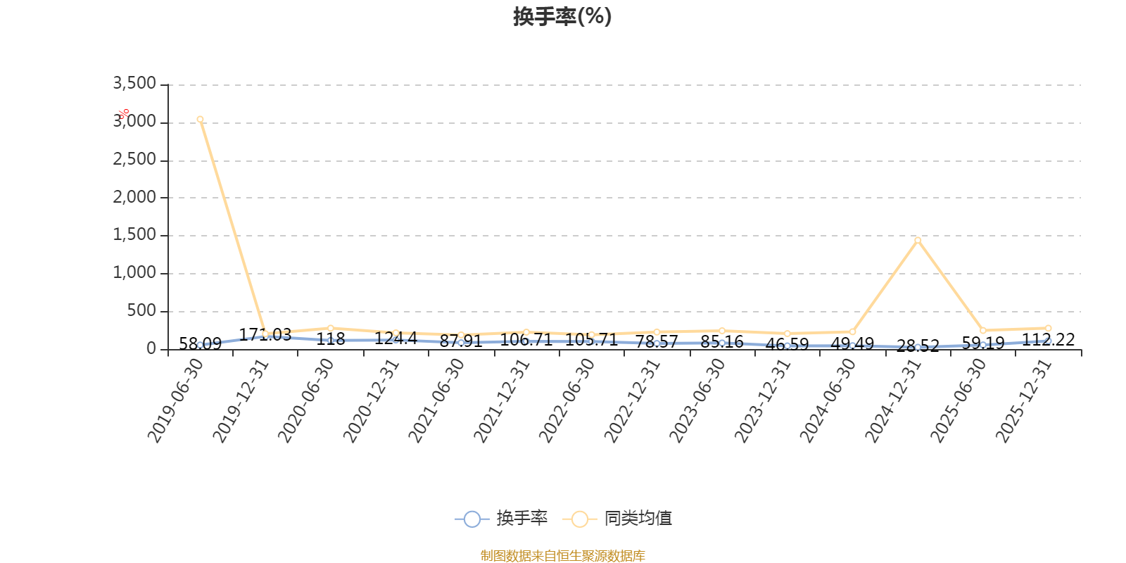 截至2025年12月31日,基金最近一年换手率约150.03%,持续低于同类均值。