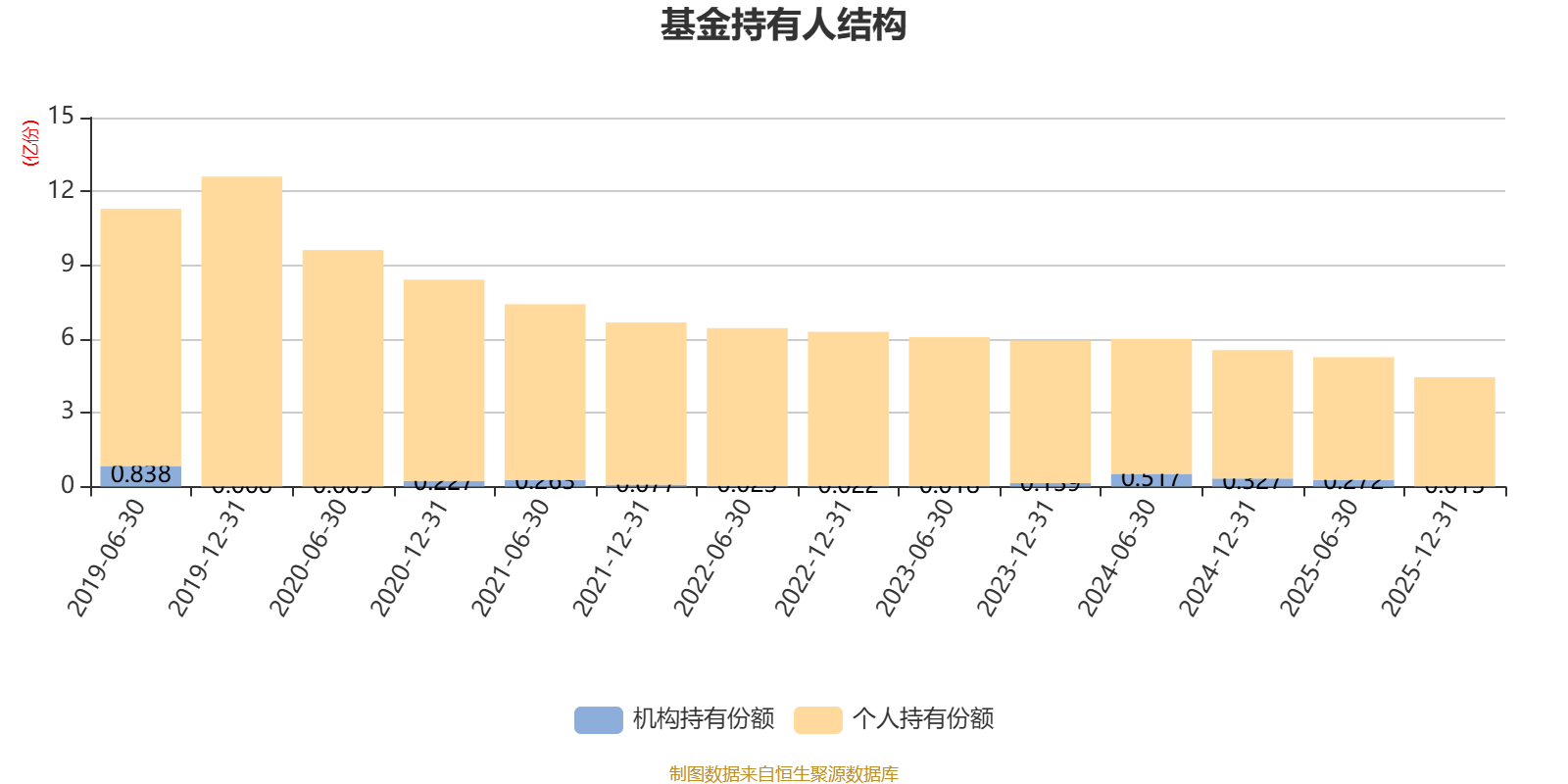 截至2025年12月31日,基金持有人共计6.89万户,合计持有4.45亿份。其中管理人员工持有1.13万份,机构持有份额占比0.30%,个人投资者占比99.70%。