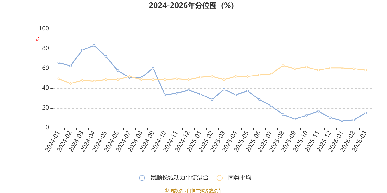 通过所选区间该基金净值增长率分位图,可以观察该基金与同类基金业绩比较情况。图为坐标原点到区间内某时点的净值增长率在同类基金中的分位数。