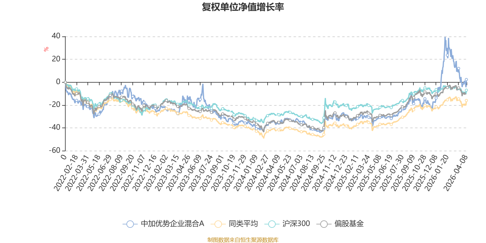 截至4月8日,中加优势企业混合A近三个月复权单位净值增长率为-18.27%,位于同类可比基金679/689;近半年复权单位净值增长率为20.55%,位于同类可比基金54/689;近一年复权单位净值增长率为65.53%,位于同类可比基金113/685;近三年复权单位净值增长率为18.02%,位于同类可比基金176/417。