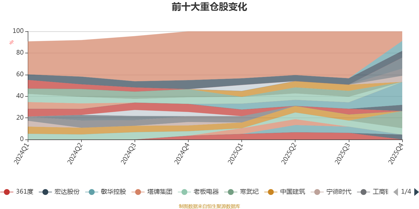 该基金持股集中度较高。截至2025年末,基金十大重仓股分别是中国海洋石油、寒武纪、海尔智家、中国黄金国际、永兴材料、建设银行、老板电器、中孚实业、中国太平、宏达股份。