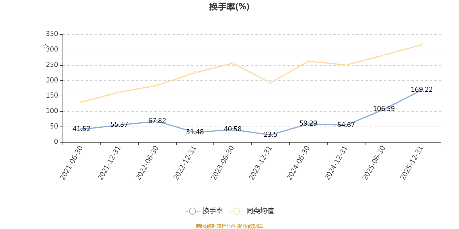 截至2025年12月31日,基金最近一年换手率约236.04%,持续低于同类均值。