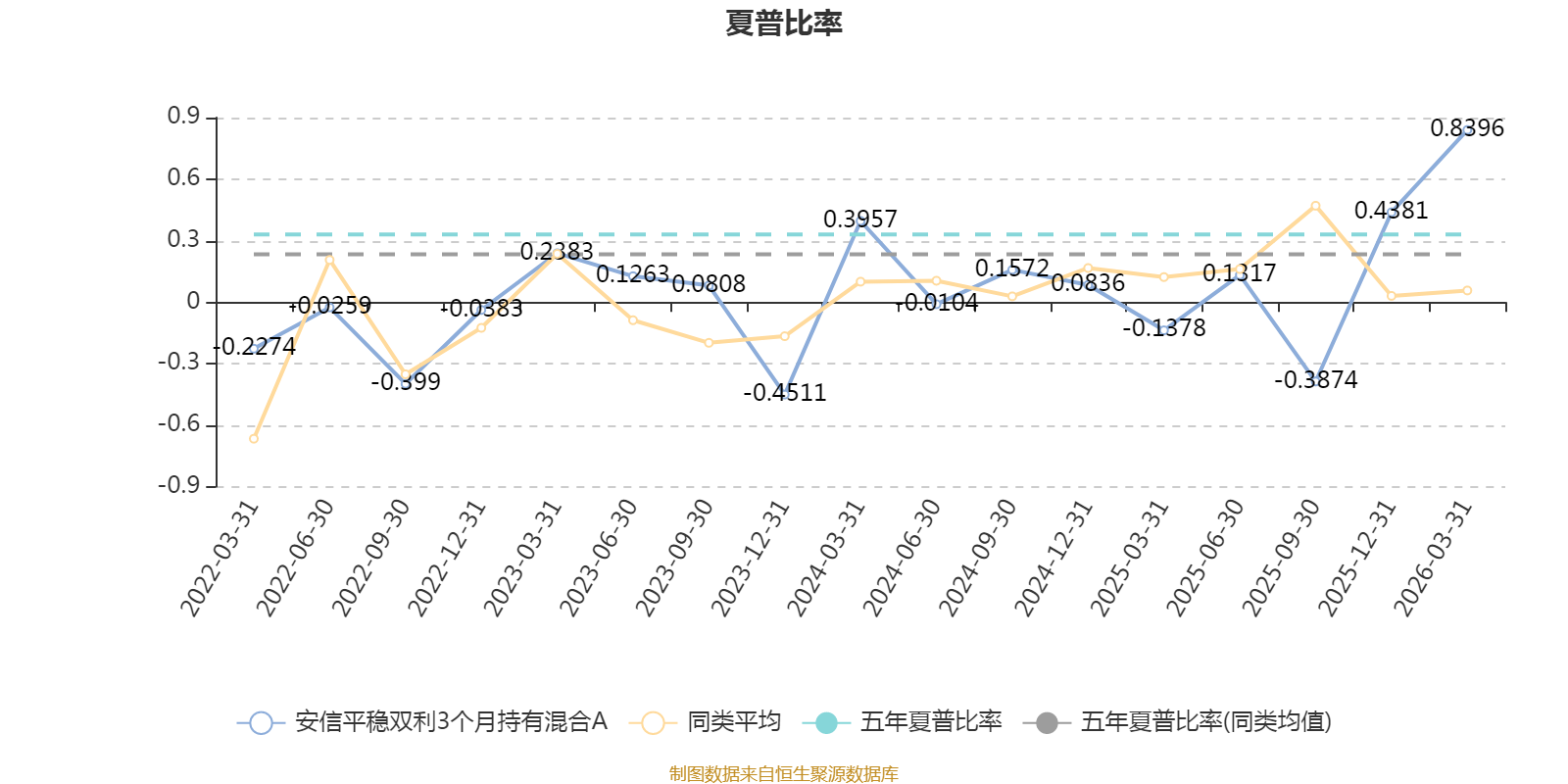 截至3月31日,基金近三年夏普比率为0.7069,位于同类可比基金196/550。