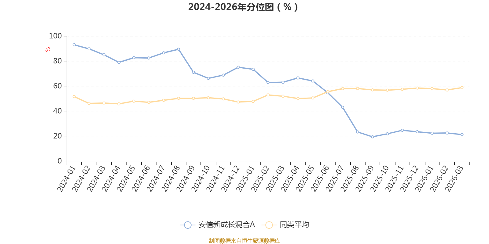 通过所选区间该基金净值增长率分位图,可以观察该基金与同类基金业绩比较情况。图为坐标原点到区间内某时点的净值增长率在同类基金中的分位数。