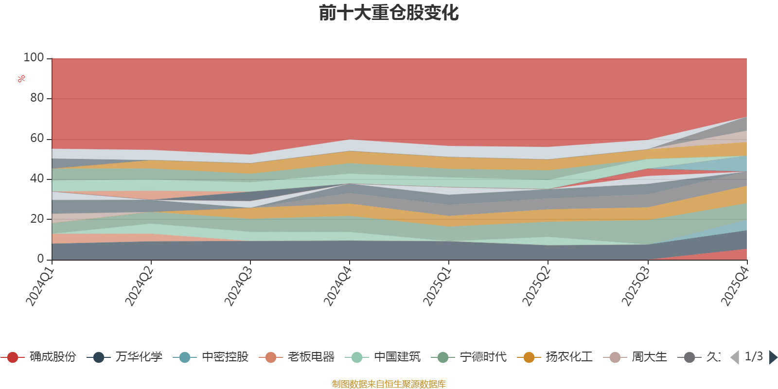 该基金持股集中度较高。截至2025年末,基金十大重仓股分别是万华化学、扬农化工、宁德时代、中国石油、久立特材、海尔智家、海螺水泥、永兴材料、确成股份、中密控股。