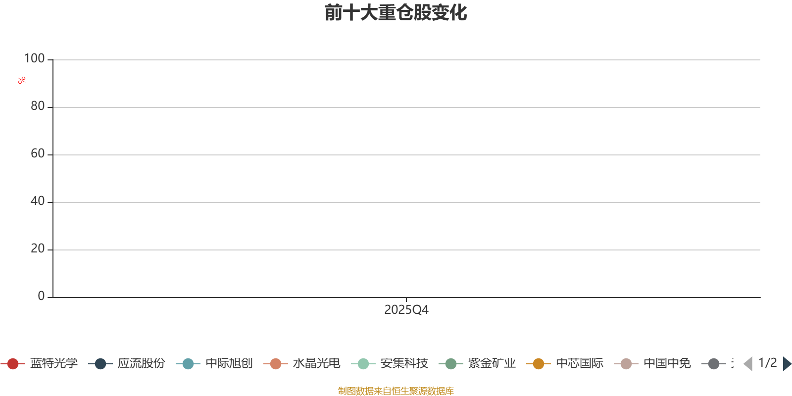该基金持股集中度较高。截至2025年末,基金十大重仓股分别是紫金矿业、中际旭创、应流股份、天山铝业、蓝特光学、安集科技、水晶光电、中国中免、中国宏桥、中芯国际。