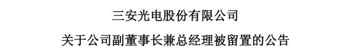 三安光电在公告中表示,公司对相关工作进行了妥善安排,公司其他董事和高级管理人员均正常履职,董事会运作正常,生产经营、管理情况正常。