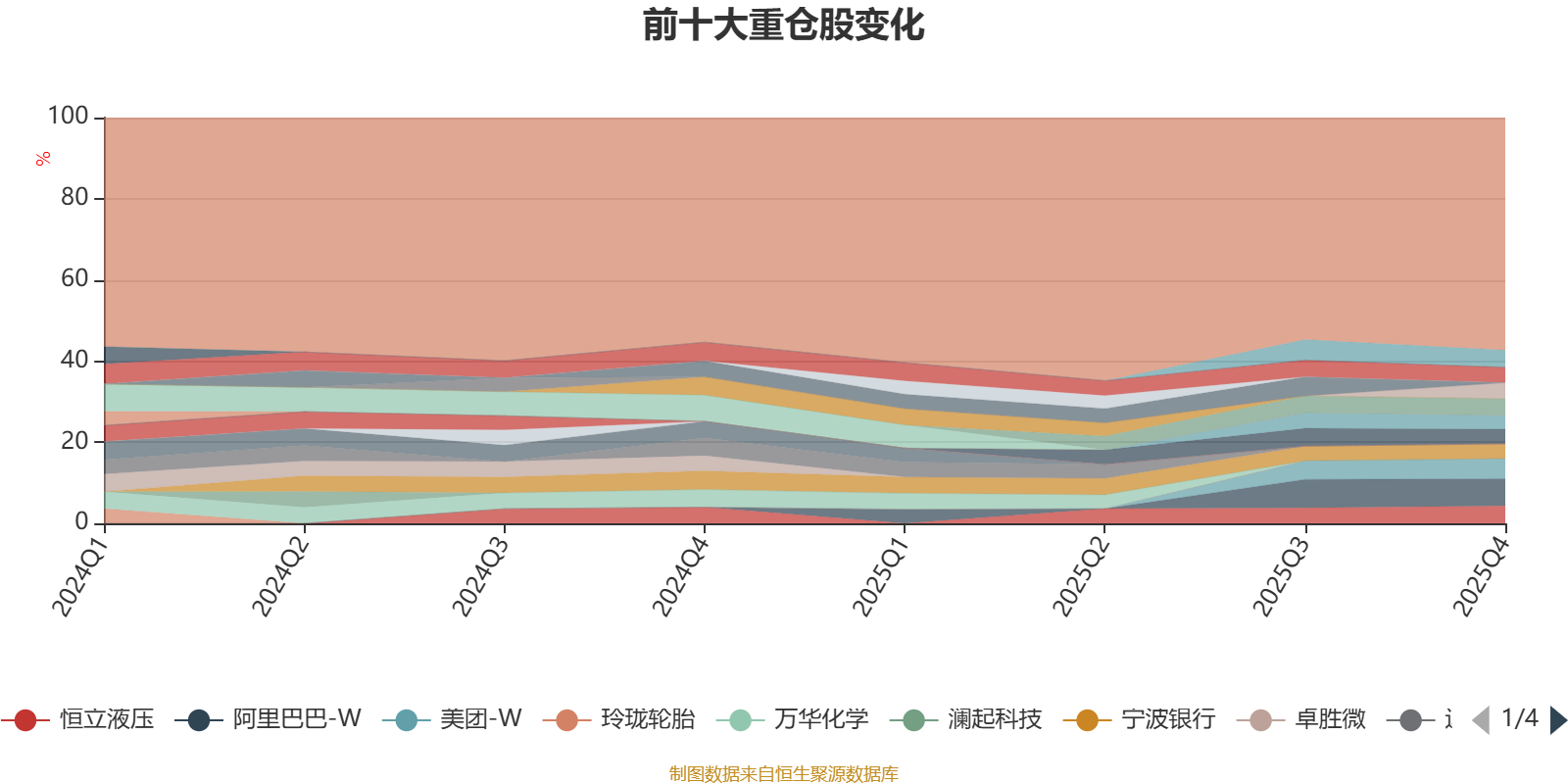 截至2025年末,基金十大重仓股分别是阿里巴巴-W、美团-W、恒立液压、中芯国际、腾讯控股、北方华创、恒瑞医药、宁波银行、快手-W、哔哩哔哩-W。